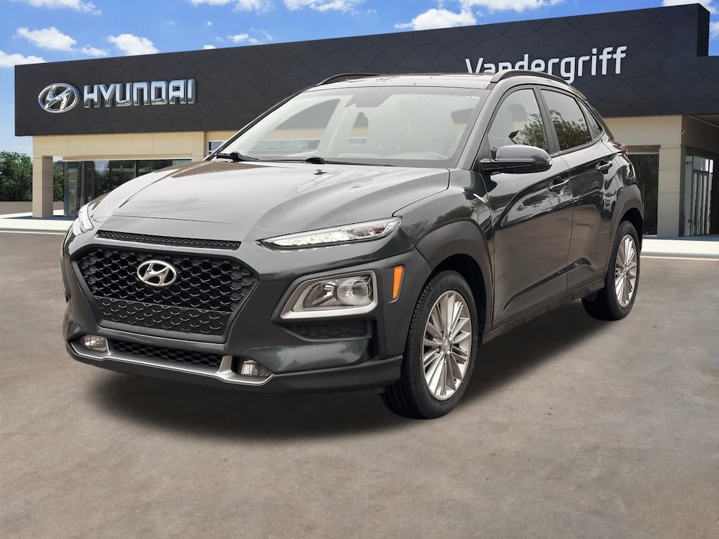 Experience the Thrill of the Hyundai Kona SEL Plus SUV at Vandergriff Hyundai. With its sleek design and powerful performance, this used 2021 Kona is ready to conquer the road. Equipped with a 4 Cylinder Engine and Automatic transmission, this sporty SUV delivers a thrilling driving experience.