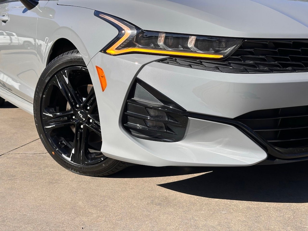Discover the 2022 Kia K5 GT-Line, a used car that redefines driving pleasure with its sleek Wolf Gray exterior and dynamic 4-cylinder turbocharged engine. This vehicle is designed for those who crave a blend of style and performance. The 8-speed automatic transmission with dual shift mode ensures a smooth and responsive ride, while the front-wheel drive enhances handling and agility. Safety is paramount, with features like blind spot monitoring, lane keeping assist, and front collision mitigation providing peace of mind on every journey. The Kia K5 GT-Line also boasts a modern interior with smart device integration, a navigation system, and a leather steering wheel, ensuring you stay connected and comfortable. The power driver seat and adjustable lumbar support offer personalized comfort, making long drives a breeze. With its rear spoiler and performance tires, this car not only looks sporty but also delivers on performance. Whether navigating city streets or cruising on the highway, the Kia K5 GT-Line promises an exhilarating driving experience tailored for the modern driver.